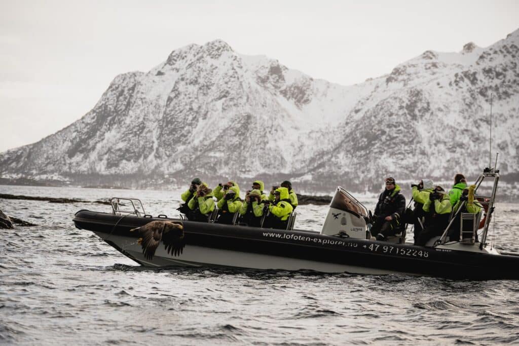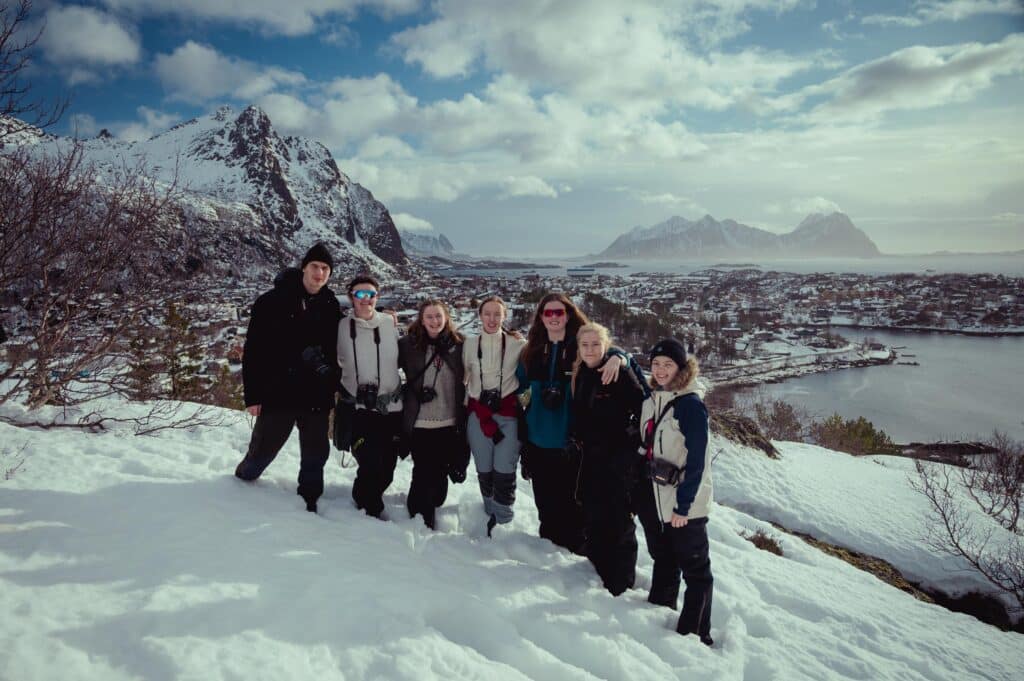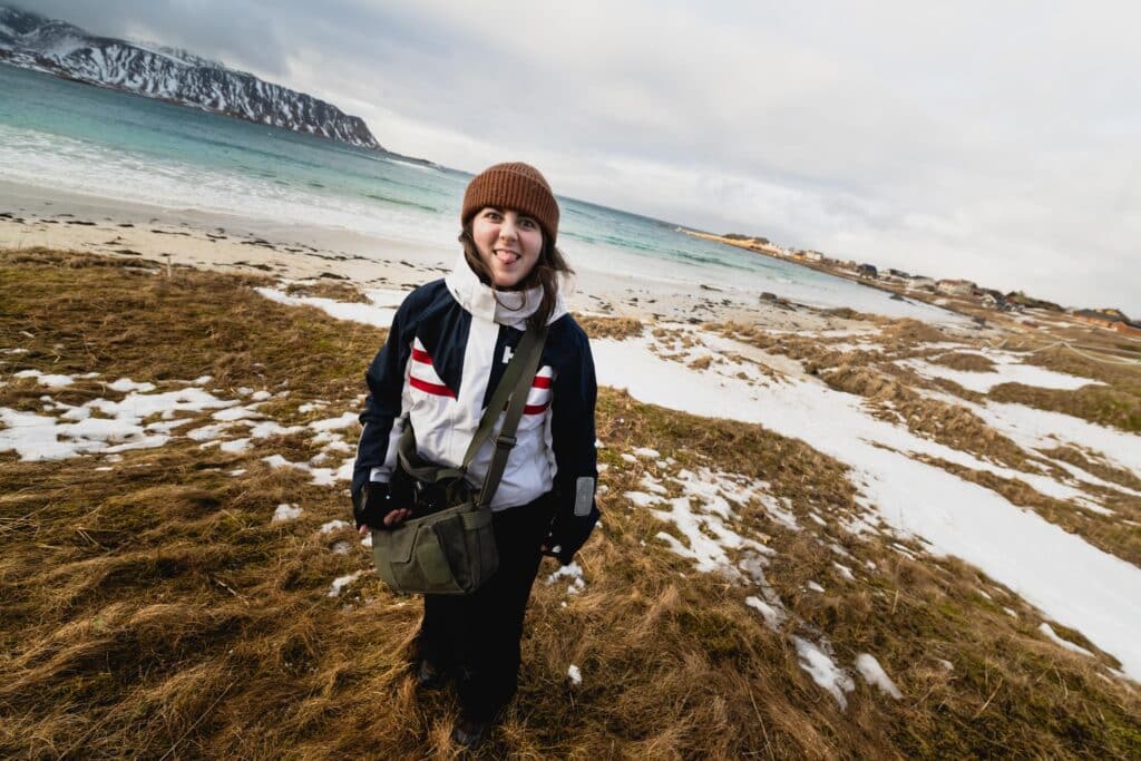 Foto/Opplevelser Rått og autentisk Lofoten Fotolinja fikk møte Lofoten i all sin kraft – vakkert, vilt og mektig! Liker du ikke været, vent fem minutter Værmeldinga viste fem dager med regn. Ikke akkurat drømmevarselet for fotografer på vei norover. Men vi reiste med en innstilling om at «alt er bedre enn fem dager med regn», og det vi fikk var så uendelig mye bedre! Alle årstider på fem dager – men med mye opphold og sol gjennom dramatiske skyer som fotografer bare kan drømme om. Foto: Brodie Sollid Etter å ha sjekka inn på det sjarmerende hostellet Furu, der alle detaljer er håndlagde og loungen består av gamle vintagemøbler, dro vi til en skjult skatt. Kunstneren Pøbel har malt flere murals rundt i Lofoten. Han fortalte ingen hvor, man måtte bare snuble over de. «Butterfly» er ett av maleriene, og dekker hele fasaden på et forlatt og veldig slitent hus på Grimsøy. Selv om været har gjort sitt beste for å rive huset, står det fortsatt og det er mulig å gå inn og ta bilder. Ikke minst kan man få kule bilder av huset foran fjellet. Foto: Eivind Høimyr | @fotolarer Roadtrip! Vi brukte en dag på å «runne» noen av Lofotens mest kjente fotospots. Rambergstranda, det nusselige fiskeværet Nusfjord (anbefaler kanelbollene her!), Hamnøy, Sakrisøy og Reine. Fullt minnekort, tomt batteri og pizza på vei hjem er en bra oppskrift for en gjeng fotografer. 01 02 01: Foto: Damon Tsiaprazis02: Foto: Eivind Høimyr | @fotolarer Surfs’ up Bølgene herjet den uka vi var i Lofoten. Instruktørene på Lofoten Surfsenter fant et lite vindu der vi kunne få til et surfekurs, og tidlig om morgenen presset vi oss inn i surfesjappa som er full av brett, plakater og surfestæsj – og en nedpå surfevibe. Vi har surfa med denne gjengen i mange år, og det er alltid hyggelig å være tilbake. Foto: Eivind Høimyr | @fotolarer Unstad har etterhvert fått rykte som en ikonisk surfestrand. Her oppstod Arctic surfing, og det er en vill følelse å dra på seg våtdrakt midt på vinteren for å vasse ut i bølgene med brettet under armen. Mange fikk et hardt første møte med bølgene, som brøt hardt mot stranda. Det var strev bare å komme seg ut, men mestringsfølelsen var desto større da vi fikk det til. Vi fikk juling – men det var sinnsykt gøy. Hvalskjelett På Hov kan man se restene av et hvalskjelett ute ved fyret. På veien besøkte vi Pøbel-huset i dagslys, før vi tok turen ut på den lange moloen. Hvalskjelettet måler over tre meter og stammer fra hodet til en 20 meter lang død hval som ble skylt på land for mange år siden. Kult motiv, og kult å se. 01 02 02: Foto: Eivind Høimyr | @fotolarer Deretter sjekka vi inn i leiligheter på Skårungen utenfor Kabelvåg, med havet og skarpe fjell rett utenfor vinduet. Safari Den heftigste opplevelsen ble for mange RIB-tur til Trollfjorden med havørnsafari. Bare båtturen var vill i seg selv – store bølger og vind gjorde turen til en berg-og-dal-bane. Likevel var det ørnene som gjorde størst inntrykk, både med størrelsen og antallet. Det var ørn overalt, så mange at det ble vanskelig å velge hvor man skulle peke kameraet. Dødskul opplevelse, og vi fikk noen fantastiske bilder! Foto: Kaja Jensen Solnedgang Siste stopp på turen var Henningsvær, med sine fiskebåter, brygger og verdenskjente fotballbane omkranset av hav og fjell. Vi tusla rundt og lukta på tørrfisken, fant en ball og testa banen og fikk en kjempefin solnedgang. Siste kveld ble tilbragt i Skårungens Spa med sauna og badestamp under åpen himmel, omgitt av fjell og hav. Noen testa badetemperaturen i havet, men basert på skrikene hørtes det kaldt ut. 01 02 03 04 05 Bildegalleri (31) 06 07 08 09 10 11 12 13 14 15 16 17 18 19 20 21 22 23 24 25 26 27 28 29 30 31 01: Foto: Eivind Høimyr | @fotolarer02: Foto: Eivind Høimyr | @fotolarer03: Foto: Eivind Høimyr | @fotolarer04: Foto: Eivind Høimyr | @fotolarer Skrevet av Eivind Høimyr Publisert mars 11, 2026 Share on Twitter Share on Facebook Share on Linkedin Share by email Copy link Relatert Foto/Opplevelser Analog foto i Køben Foto/Opplevelser, Musikk – Band/Vokal Ruinpub, jazzklubb og uendelig med fotospots! Foto/Opplevelser Foto i studio